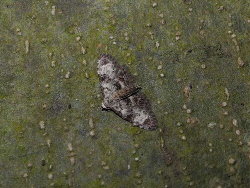 日曜日、ヤブツバキの幹にチラチラ飛んでは止まっていた ちっちゃい蛾。 クロモンホソコヤガ Araeopteron kurokoi 特にツバキに限った訳ではなく、カシ類や他の太めの幹に止まっているのをよく見る。 ちっちゃいと言っても大きさが伝わらないので、 展翅した…