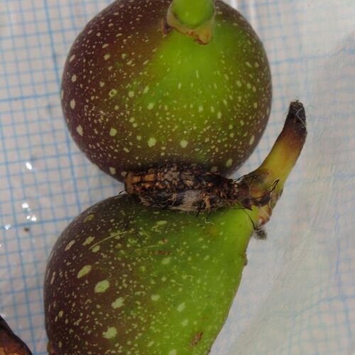先日見つけて記事にした、「ニジオビベニアツバの幼虫」 イヌビワの実を取ってきて与えたら、 カジカジしていたのでヨシヨシ、と思っていたら、、、 なんか様子が変。 よく見たら 別の生き物にメタモルフォーゼしていた。 チビアメバチの仲間の繭かしらん? が…