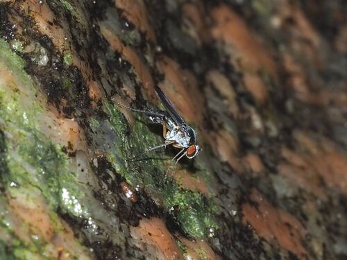 あれ?ネタガナイ。 と言うことで、ちょっと前の画像から。 砂防堰堤から流れ出て200mほどで涸れ沢になる、 お散歩コース唯一の水場。 その途中にある落差1mの滝もどき。 そこの濡れた岩に執着していたハエ。20150614 アシナガバエ科 Dolichopodidae の仲間…